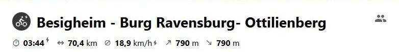 Nachdem für den Mittwoch schlechtes Wetter vorhergesagt war, wurde dienstags eine Nachmittagstour unternommen und im Burg-Biergarten von Stettenfels eine gemütliche Einkehr gemacht. Schau dir die Tour auf Komoot an.