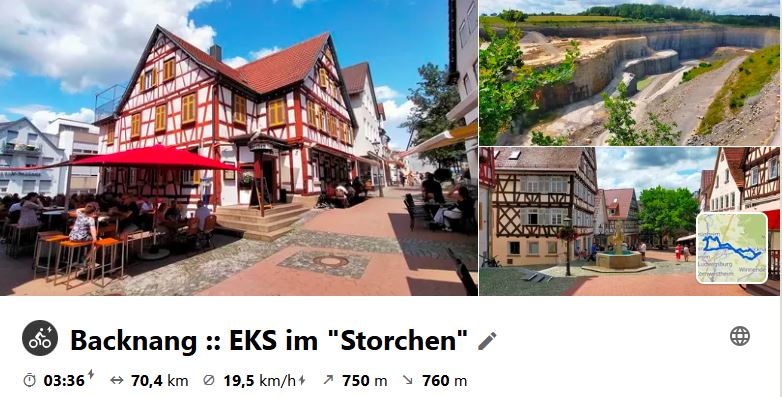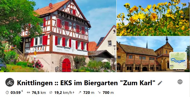 An einem wirklich heißen Tag wurde die Vorjahrestour wiederholt. Zu Mittagsrast gab es im Biergarten in Knittlingen ein schönes schattiges Plätzchen für die Radler. Schau dir die Tour auf Komoot an.