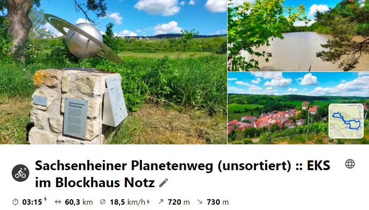 Die Tour besuchte alle Planeten des Sachsenheimer Planetenwegs, der über die gesamte Markung ging. Die Sonne ist in Sachsenheim am Rathaus und der äußerste Planet Neptun ist in Häfnerhaslach. Damit es auch touristisch den Stromberg einschließt, geht der Weg in Spielberg steil bergauf zum Uranus und dann weiter bis zum Mittleren Rennweg. Als weiteres Highlight wurde mit dem Rad über einen engen Pfad zum Schlierkopf mit 449 m Höhe gefahren.