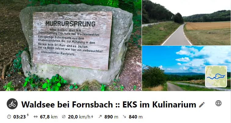Die Tour ging von Besigheim nach Freiberg (N). Dort wurde in die S4 gestiegen, die die Gruppe nach Backnang bringen sollte. In Marbach war jedoch Ende der Reise, da eine andere Bahn auf der Strecke liegengeblieben war. So wurde dann nach Backnang geradelt und dort in die geplante Route durchs Murrtal zum Waldsee geschwenkt. Dort war dann im Kulinarium die Mittagsrast. Zurück ging es auf anderer Route, am Murrursprung vorbei, wieder nach Backnang. Hier wieder in die S4 nach Freiberg (N) und mit dem Rad nach Besigheim. Letztlich mussten auf der Tour 99 km geradelt werden. Seit 2014 ist diese Tour bei der Mitttwochsradelgruppe jährlich einmal im Programm! Schau dir die Route und den Bildbericht auf Komoot an: https://www.komoot.de/tour/860406232?ref=wtd