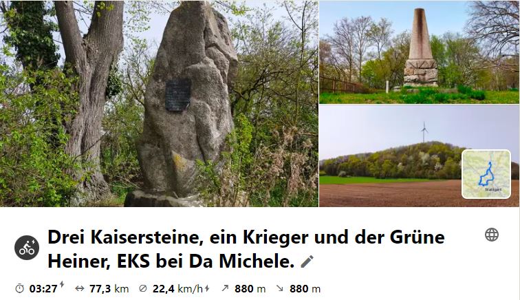 Erste 2022er Tagestour mit 8 telnehmenden Mittwochs-Radlern der SZ*B. Eine Tour mit vielen Highlights: Kaiserstein Römerhügel, Landesvermessung Solitudeallee, Kaiserstein Münchingen, Grüner Heiner, EKS bei Da Michele, Hirschlandener Krieger, Kaiserstein Hemmingen, Hemminger Schloss, Marktplatz Markgröningen.