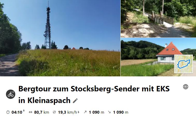 Nach 2-wöchiger Pause wegen Regen konnte endlich am 21.Juli 2021 wieder gemeinsam geradelt werden. Die Tour führte auf den 539 m hohen Stocksberg bei Löwenstein. Zuvor wurde im Sonnenhof in Kleinaspach eingekehrt und sich für die Bergstrecke gestärkt.