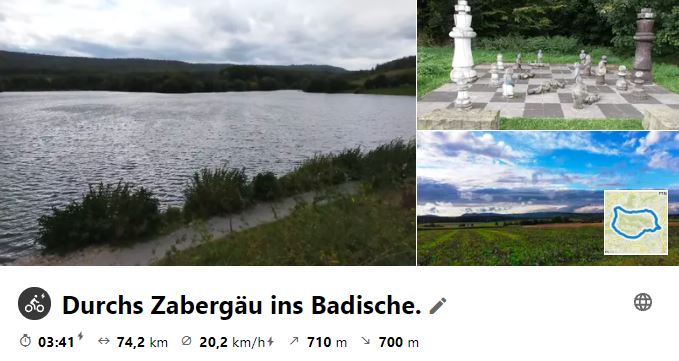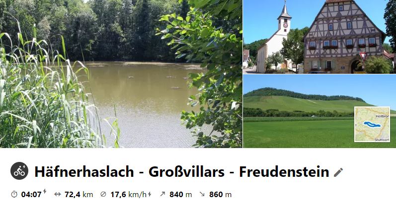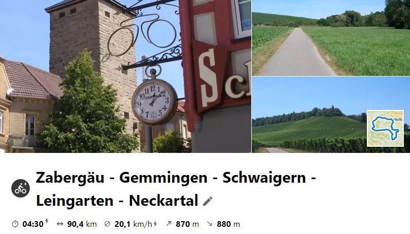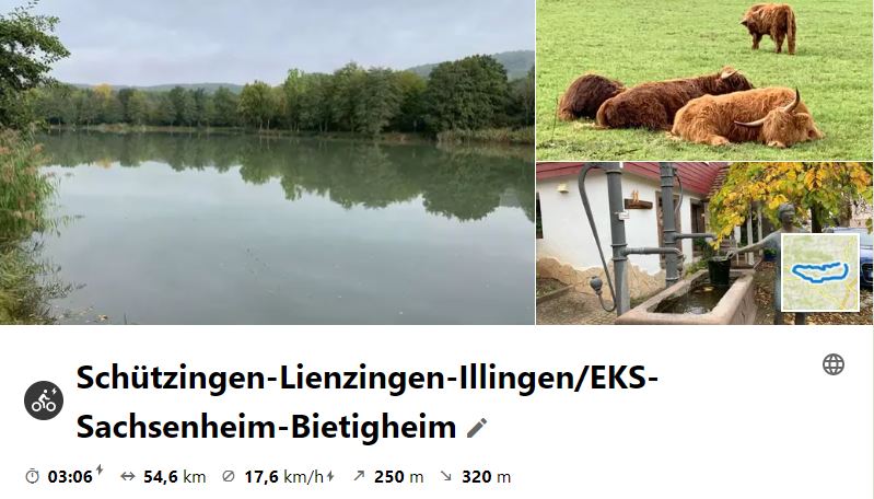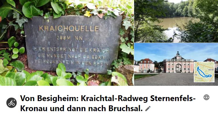 Am 22. Sept. 2021 wurde der erste Teil des Kraichgau-Radwegs gefahren. Dazu ging es erst mal nach Sternenfels, wo an der Kraich-Quelle der RW startet. Diesem wurde bis Kronau gefolgt und dann nach Bruchsal geradelt, wo mit der Bahn zurück nach Bietigheim/Ellental gefahren wurde. Letztlich ging es zum Ausrollen, mit kurzem EKS im Posten 35, zurück nach Besigheim, wo man bei Sonnenuntergang ankam.