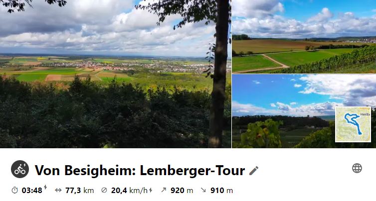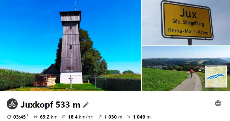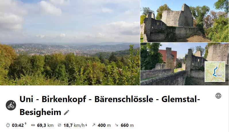 Am 30. September 2020 war mal wieder ein "Klassiker" an der Reihe, jedoch mit einigen neuen Streckenvarianten, wie Monte Scherbelino (Birkenkopf), Glemsquelle im Rotwildpark, Nippenburg, Hardt- und Schönbühlhof und Frauenkirche bei Unterriexingen.