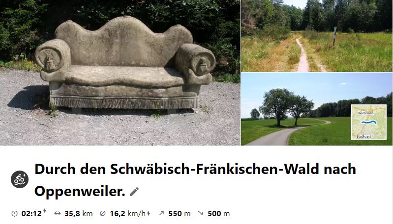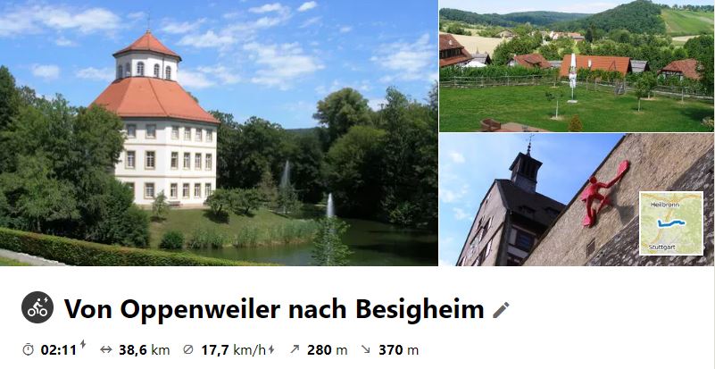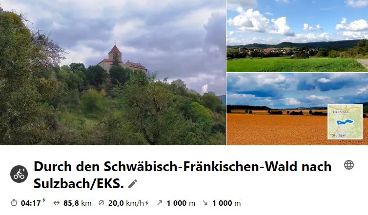 Nach einem Regenmittwoch, an dem die Tour ausfallen mußte, ging es am 22. Juli 2020 bei bestem Radelwetter über die Hochstraße durch den Schwäbisch-Fränkisch-Wald nach Oppenweiler. Die Rücktour führte unterhalb der Höhen über Rietenau. Kleinaspach und Steinheim ins Enztal. Der Tourbericht ist zweigeteilt in Hin- und Rücktour!