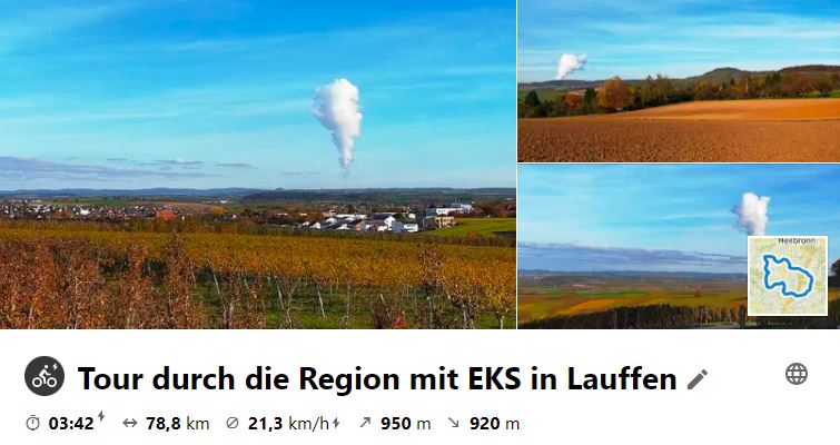 Am 27. Oktober 2021 fand die Abschlusstour der Mittwochsradler bei schönem Herbstwetter für diese Saison statt. Nochmals war es eine lange Tour mit vielen Auf- und Abstrecken, so dass entsprechend viele Höhenmeter zusammen kamen. Es ging im Gegenuhr- zeigersinn durch unsere Region mit einem EKS in Lauffen. Am Ende der Tour gab es dann zum Saisonabschluss noch eine gemütliche Einkehr im Hofcafé beim Weissenhof.
