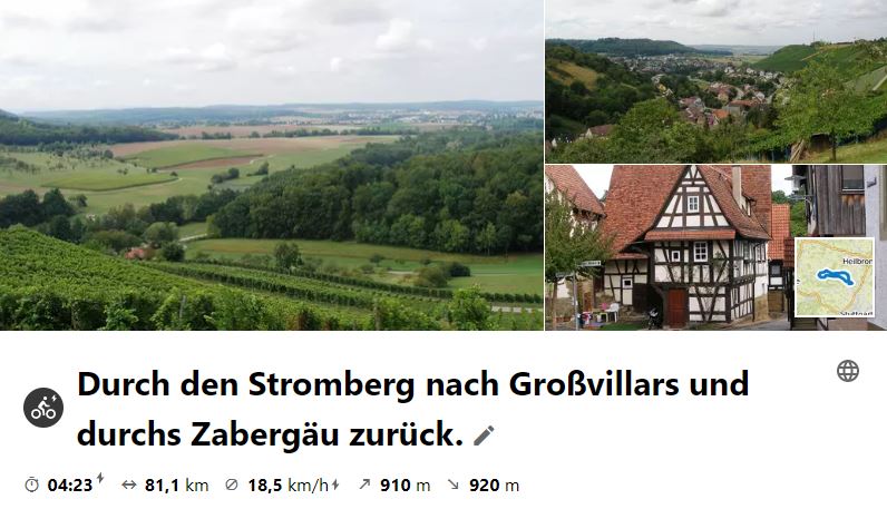 Am 29.Sept. 2021 führte die Tour zunächst durch das Zabergäu und dann hinab ins Badische Kürnbach, wo Mittagsrast war. Bei Sonne und gelegentlichem Regen wurde über Lienzingen und Illingen zum Löchgauer Weissenhof zu einer Abschlusseinkehr gefahren.
